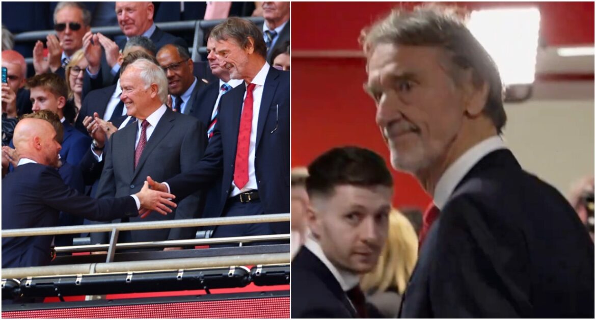 In a video shared by @BradJCox_ on X (formerly Twitter), Ratcliffe was snapped walked through the mixed zone at Wembley following his side’s victory, with the 71-year-old seen congratulating Ten Hag and his players on the stadium’s balcony before their trophy lift.