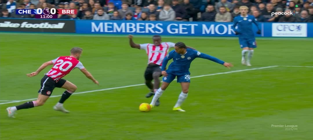 The controversy revolved around Chelsea striker Joao Pedro, who went down inside the Brentford penalty area following a challenge from defender Michael Kayode. Replays and multiple angles showed apparent contact—specifically Kayode clipping Pedro’s heel as the Brazilian attempted to turn and advance—prompting immediate appeals from Chelsea players and the home crowd. Brooks waved play on without hesitation, and VAR (led by Stuart Attwell) did not intervene to recommend an on-field review, allowing the decision to stand.