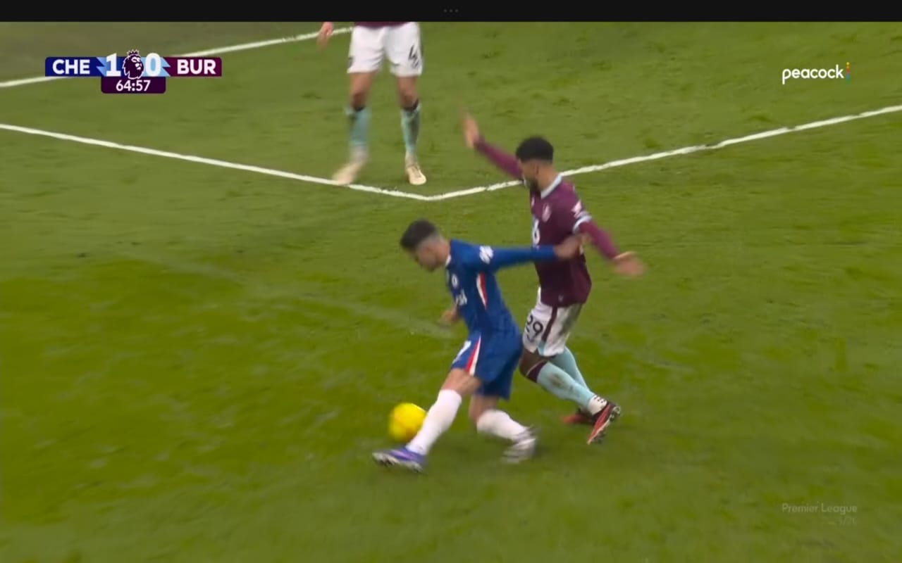 The incident that sparked the latest wave of outrage occurred in the 65th minute, with Chelsea still leading 1-0 courtesy of João Pedro‘s fourth-minute opener (assisted by Pedro Neto). Neto, fresh off a strong performance and showing his trademark pace, received a clever back-heel from João Pedro inside the box. As he shaped to shoot or drive forward, Burnley defender Josh Laurent (or a combination challenge involving Bashir Humphreys in close proximity) appeared to make high, dangerous contact—clipping Neto’s ankle or lower leg with studs up in a lunging tackle that sent the Portuguese winger crashing to the turf in visible distress.